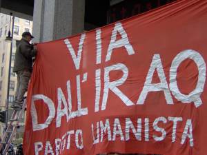 chiedevamo ai passanti di fermarsi un secondo a farsi fotografare con dei cartelli (tipo NON VOGLIO LA GUERRA, VIA LE TRUPPE, VOGLIO LA PACE).